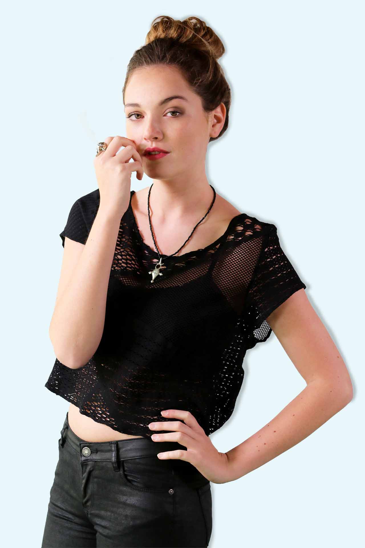 Top WadeP – Dentelle Asymetrique Noire 01